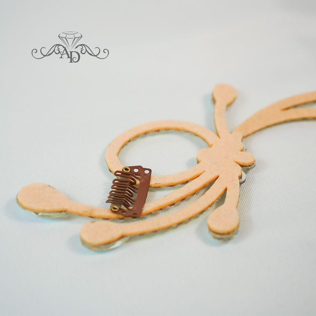 - Color: Beige base with crystal AB rhinestones