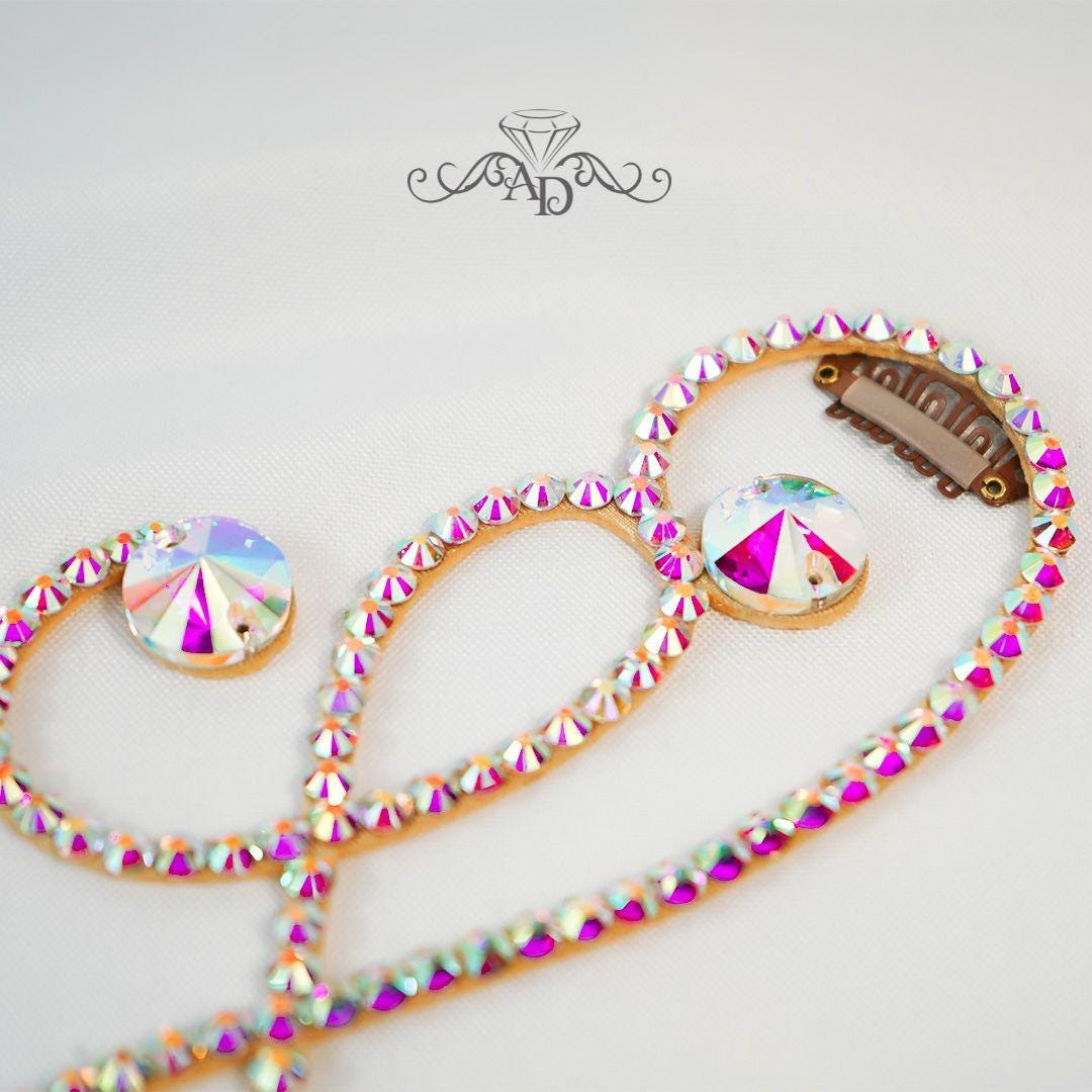 - Color: Beige base with crystal AB rhinestones