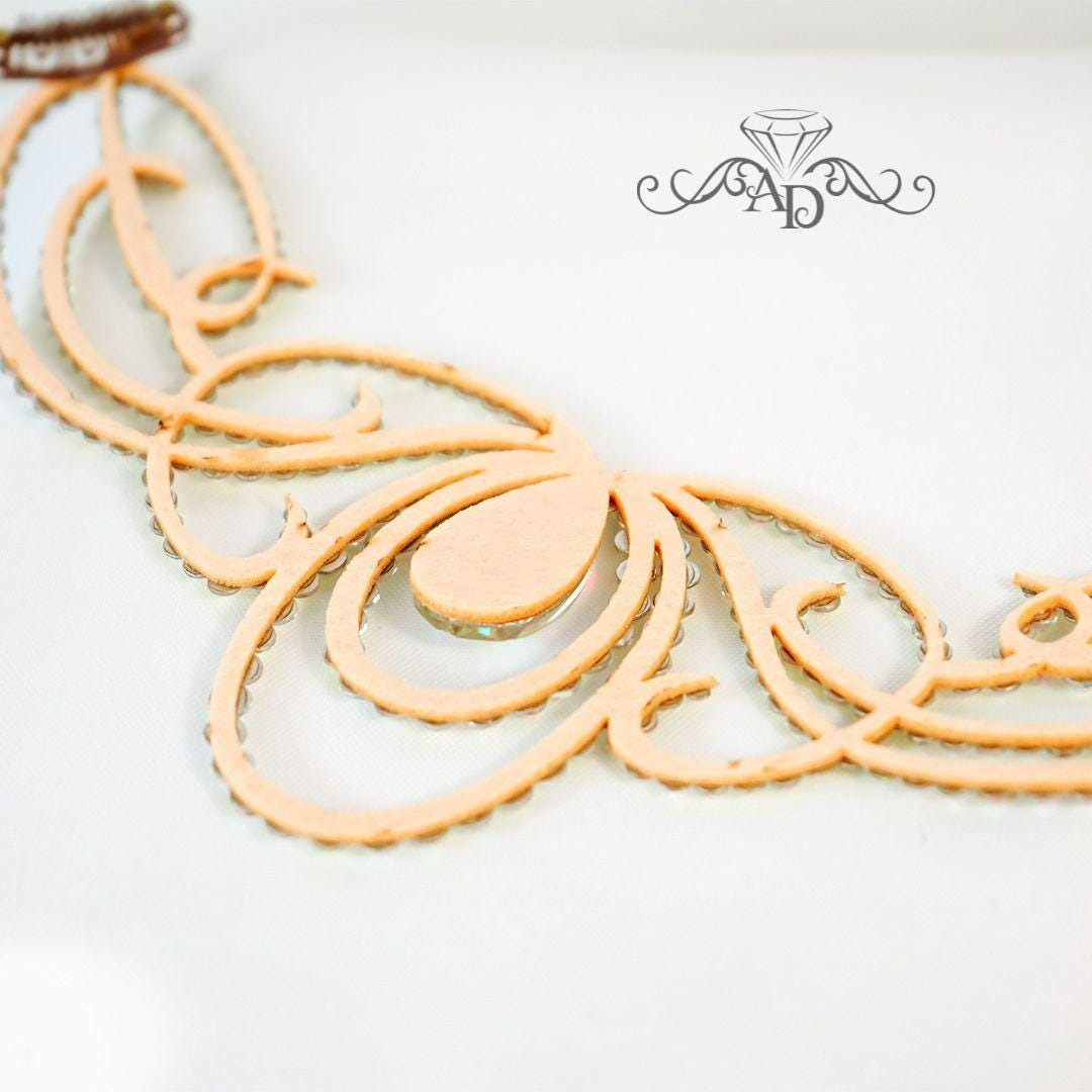 - Color: Beige base with crystal AB rhinestones
